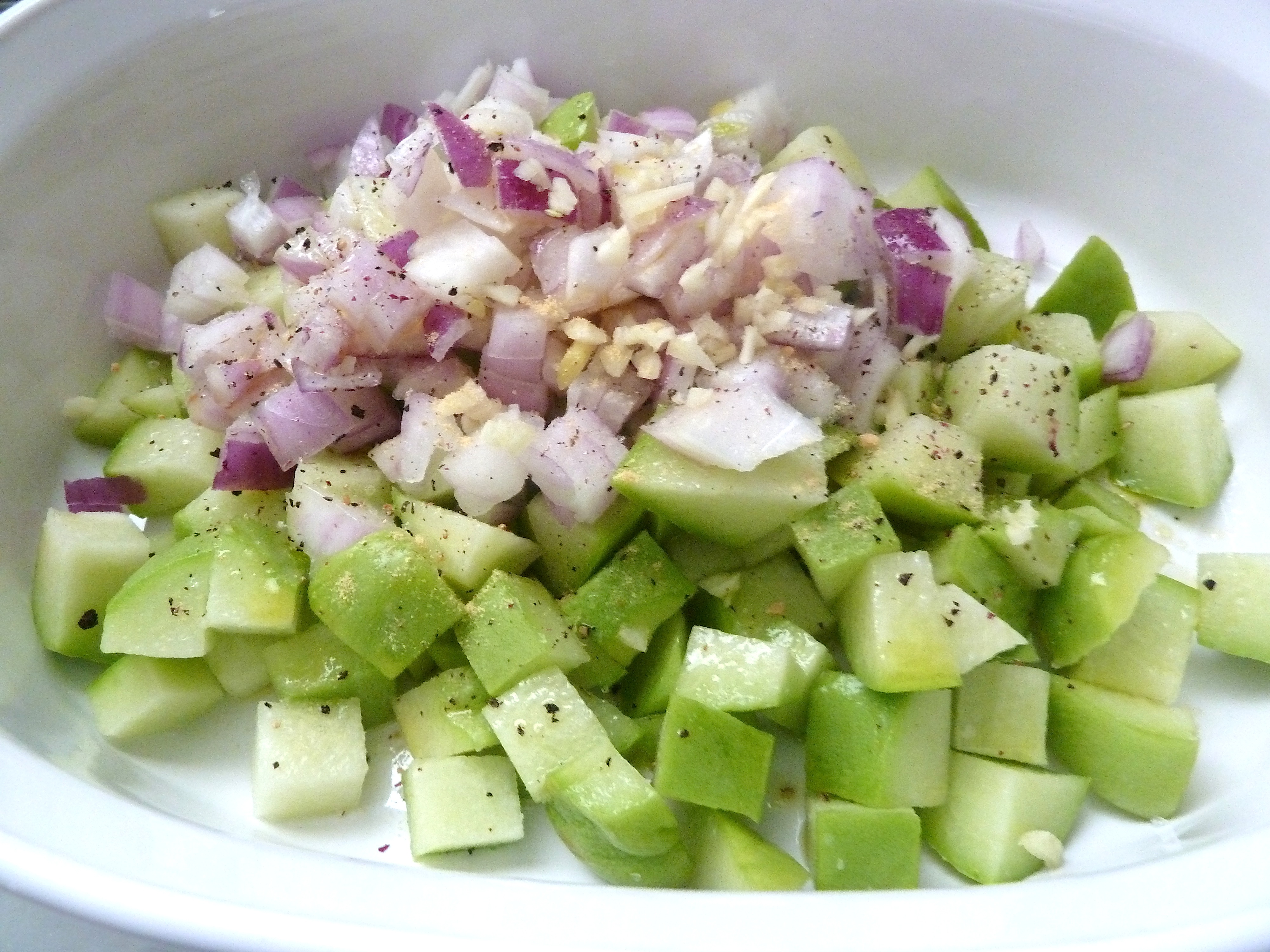 Today I’m bringing you back to Réunion, the French colony (officially a Département Français d’ Outre-Mer, or DOM) in the Indian Ocean.  In my first post on Réunion, I was impressed by the Indo-French culinary fusion found on this multicultural island.    In contrast, today’s recipe is a classic French-style gratin using local produce.  The vegetable is chouchou, which is grown in one specific area on the island, the Cirque de Salazie.