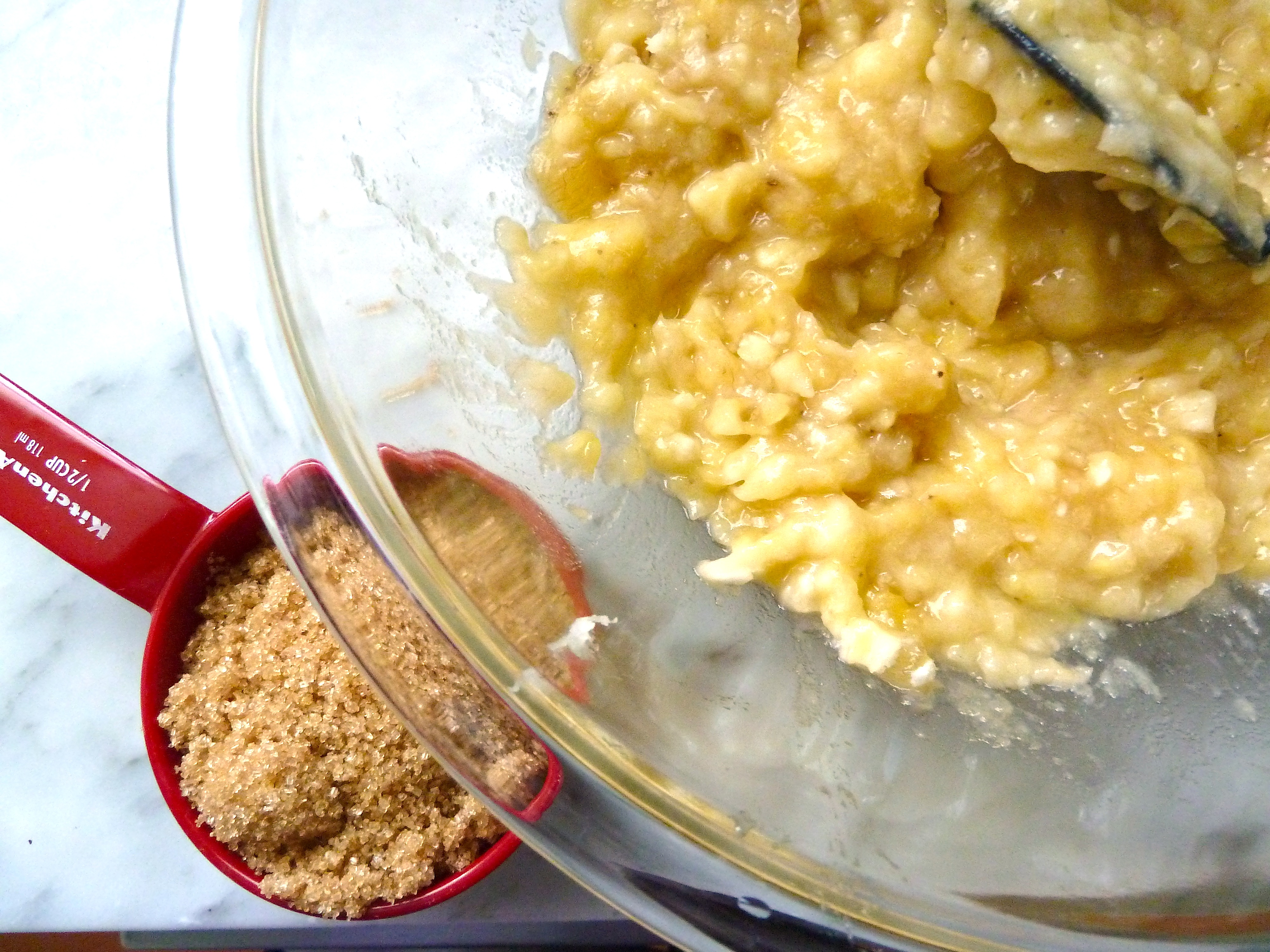 1.  Peel and mash bananas as smoothly as possible.  Set aside.