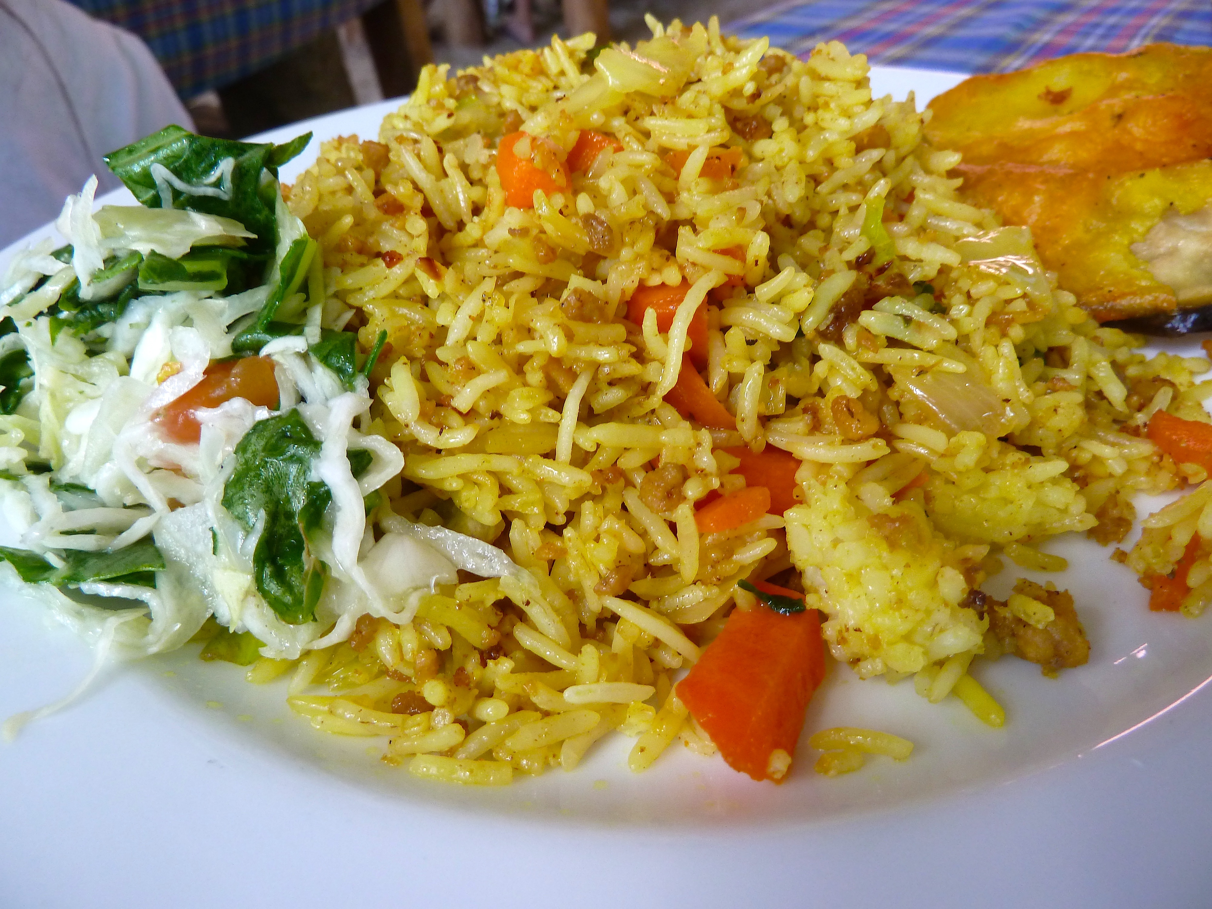 The main attraction on La Digue is Anse Source d’Argent, an gorgeous little beach landmarked by one of Seychelles’ icons, the large granite boulders which are said to be the prehistoric peaks of Gondwanaland, one of the early-precontinents.  These are set on soft, white sand beaches fronted by crystal clear, warm, turquoise water. After building up the kind of hunger you get after swimming, we had lunch at the only place to eat at Anse Source d’Argent,which was carefully prepared and delicious at Lanbousir.  More fish curry, a local fried rice made of basmati rice, and a caramelized banana crepe for dessert.