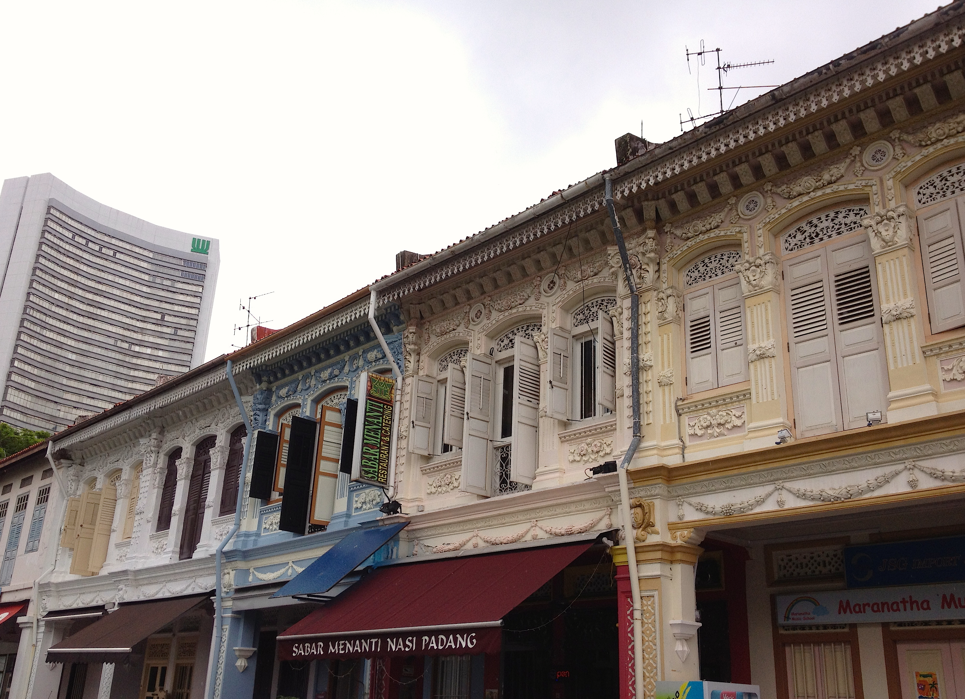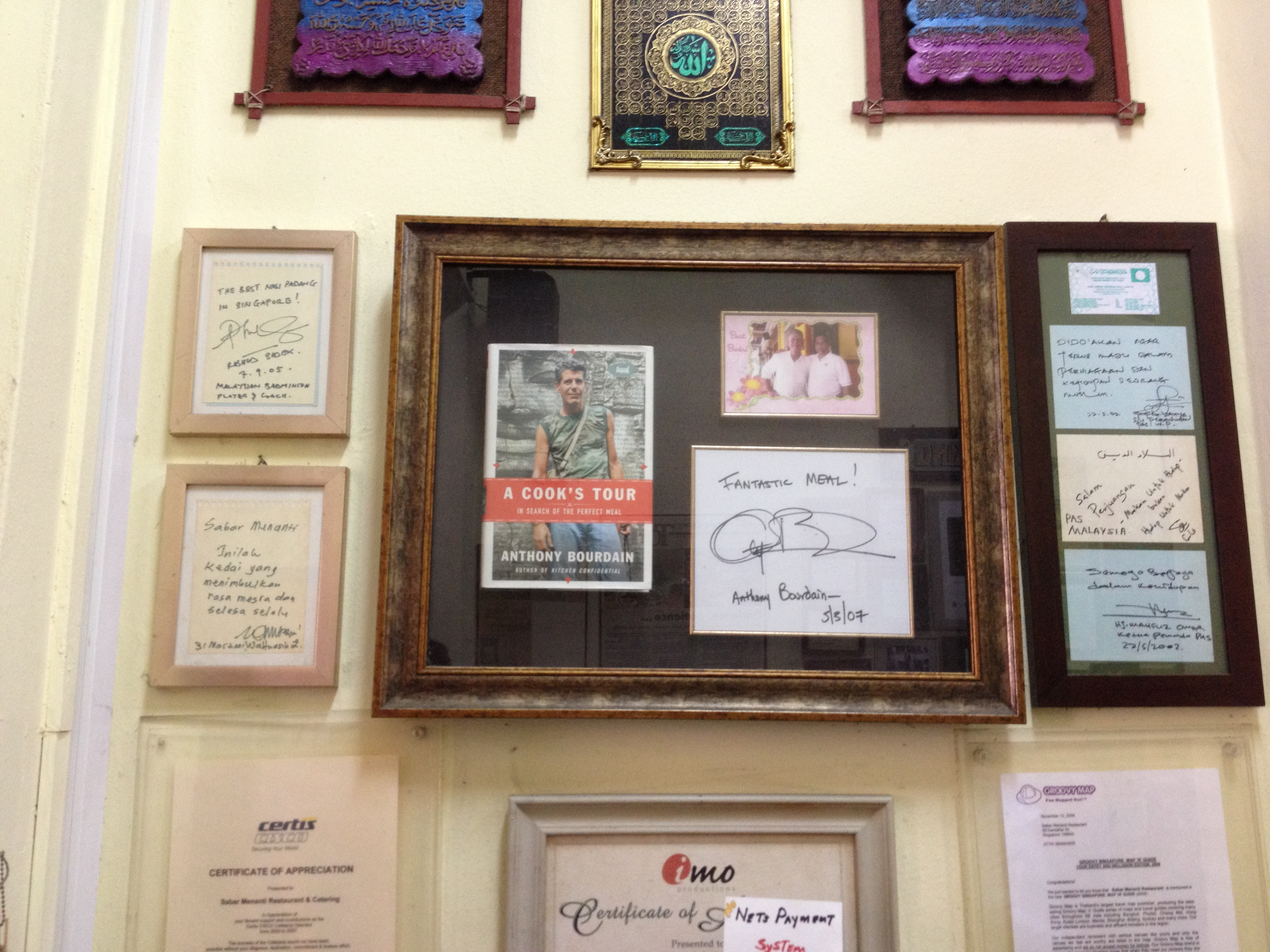 I also enjoyed revisiting the varied tastes of Nasi Padang, the Indonesian meal of assorted cooked dishes served with rice.  We had it old-style at Sabar Menanti Nasi Padang, where I saw an autographed photo of Anthony Bourdain from when he had visited.  It is a simple place in an old Chinese shophouse with the skyscrapers of the financial district behind it.  Its interior features a glass case showcasing a wide array of cooked Indonesian dishes, from which you can make a selection to have plated with your bowl of rice.  If you’re on a rushed eating itinerary like I was, it’s a good and fast way to sample the tastes of lemongrass, chiles, turmeric, curry and coconut in various combinations.