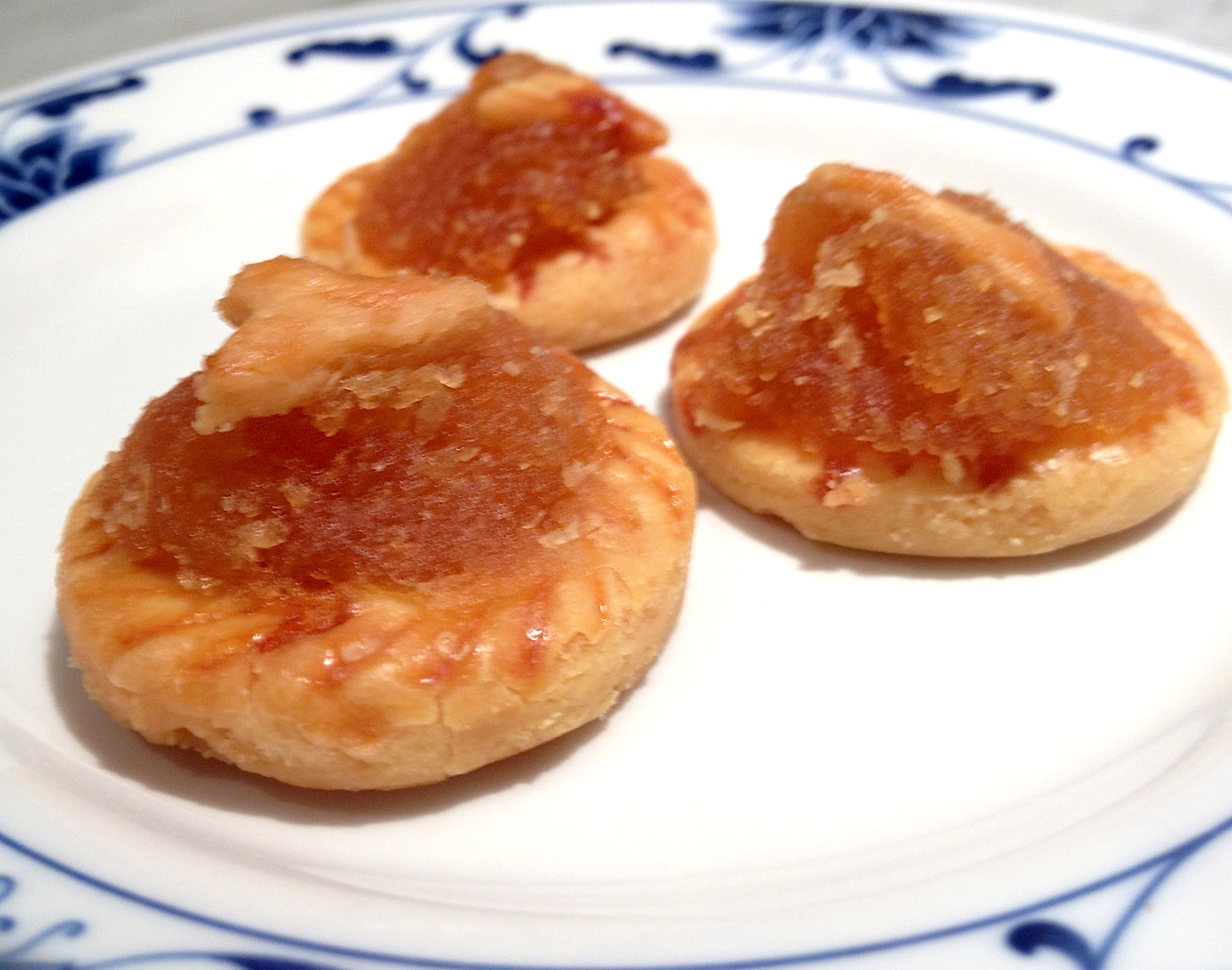 I also sampled a few new tastes.  The first novel tidbits were Chinese New year pineapple tarts (see Cheryl’s recipe in A Tiger in the Kitchen or my other #LetsLunch Singaporean pal, Pat Tanumihardja’s, recent post on Indonesian style pineapple tarts).  Imagine the flakiest buttery pastry possible showcasing homemade, nearly caramelized pineapple jam.
