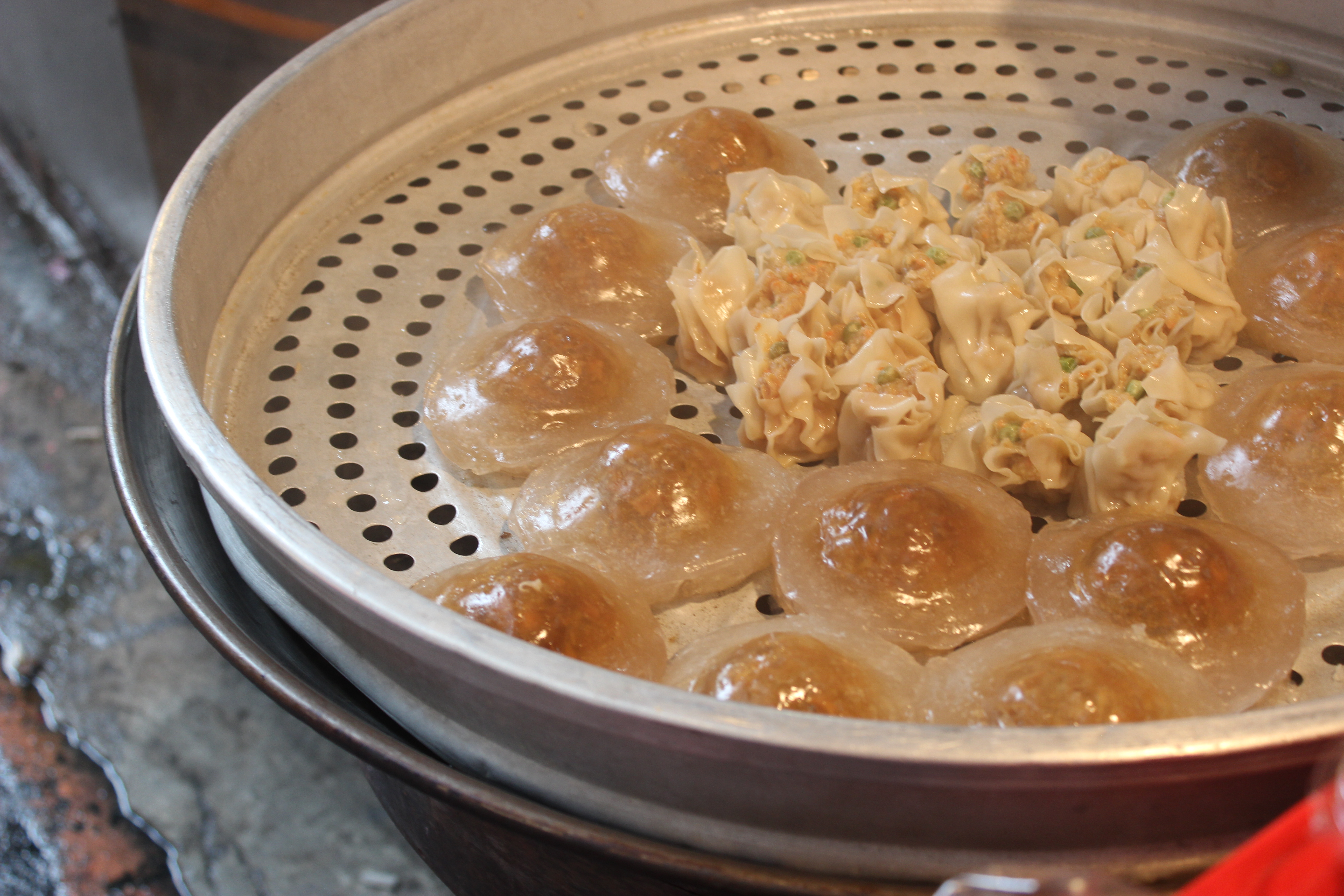 And what are these? Not flying saucers, but bawan, or what are called “Taiwanese meatballs.” They’re large pork meatballs wrapped in a sticky rice flour based wrapper, steamed and served with a sweet soy and garlic based sauce. This stall made an excellent version.