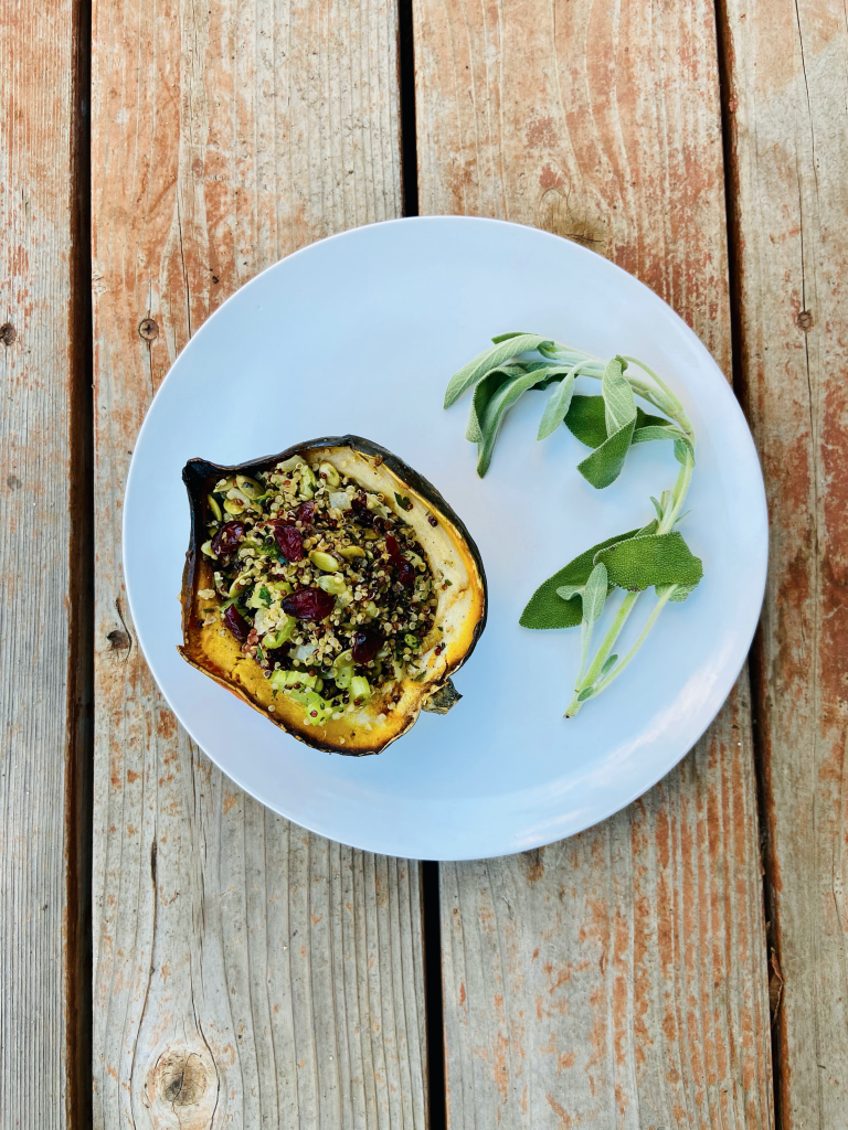 Roasted Acorn Squash with Thanksgiving Quinoa Pilaf
