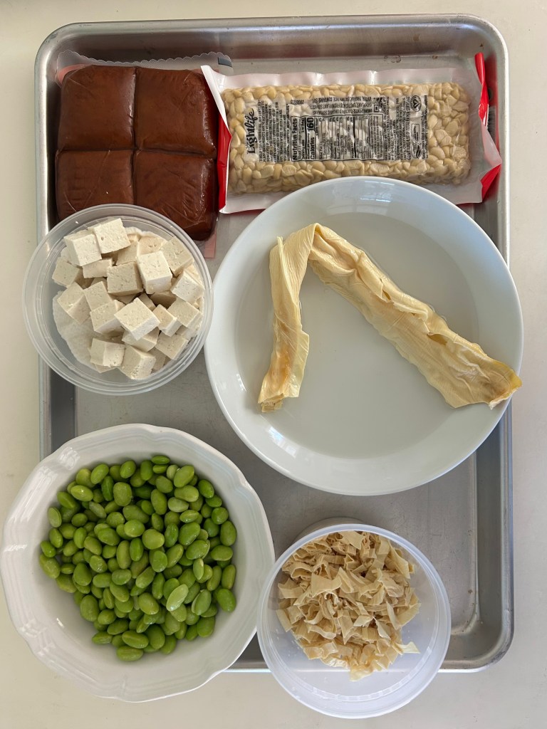 I created this recipe because it showcases the many delicious ways soybeans– a terrific source of plant-based protein– are used in Chinese cooking. I’ve included soybeans (edamame), tofu, and tofu skin (yuba), and combined it with one of my favorite leafy greens, Chinese mustard greens. If you serve it with a whole grain (brown rice or barley or my suggestions), you’ve hit on the main food groups which have been shown to promote longevity and prevent disease: legumes, whole grains, and vegetables. This is seen in the Mediterranean diet and the EAT Lancet Commission’s Planetary Health Diet (more on that to come in a future post!) And the seasonings combine classic flavors from Chinese cuisine: five spice powder, white pepper, soy sauce, sesame oil and rice vinegar.