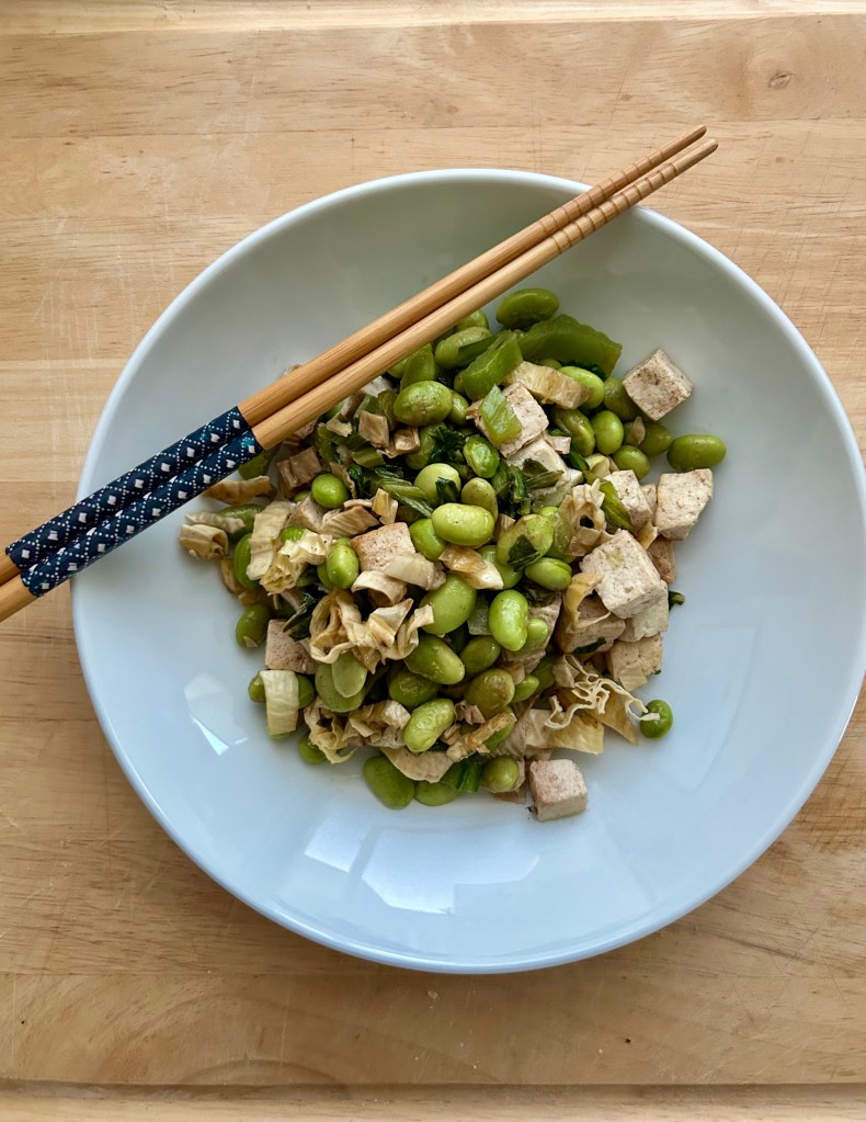 Inspired by Woks of Life https://cookswithoutborders.com/edamame-tofu-pickled-mustard-greens