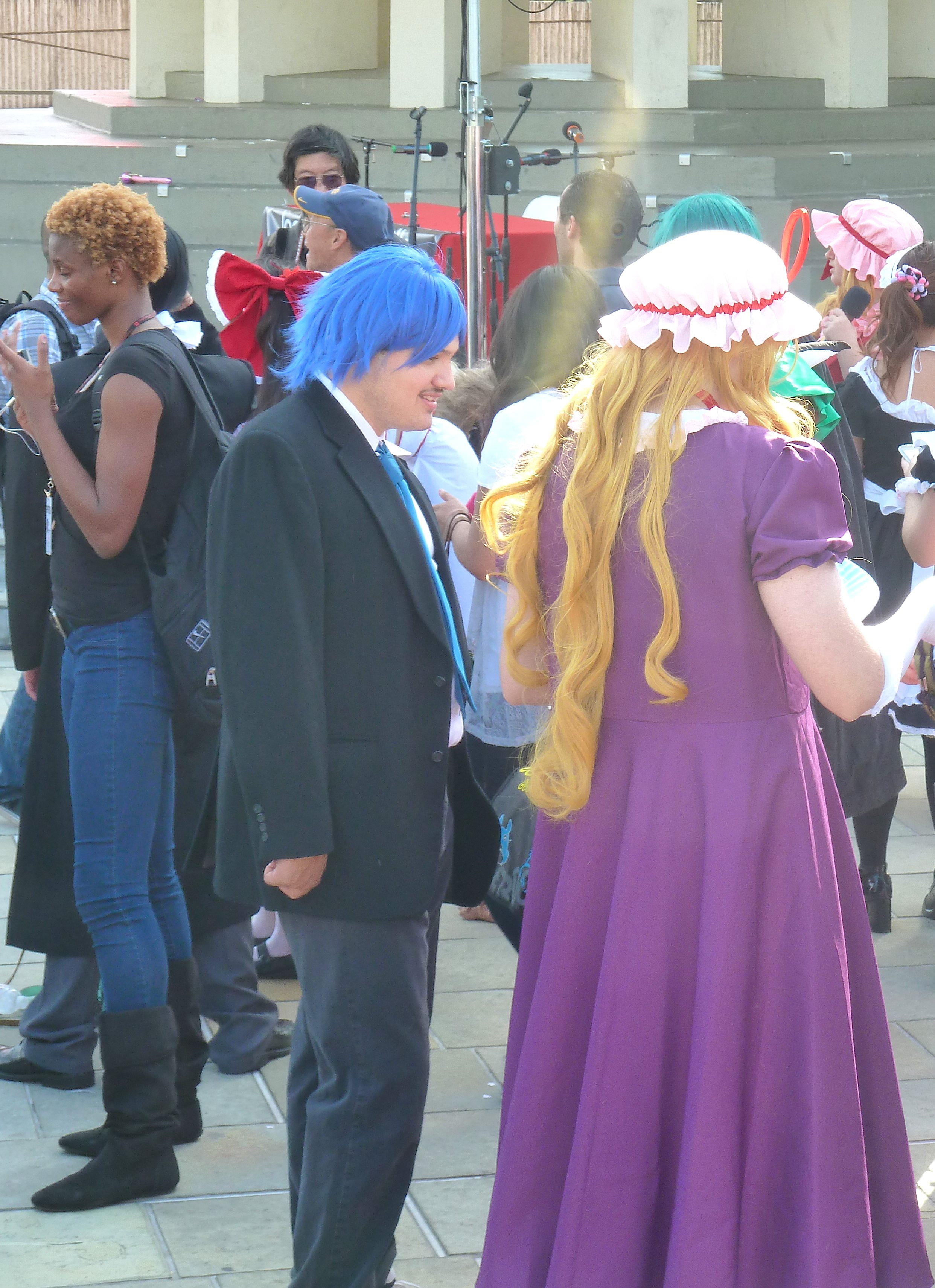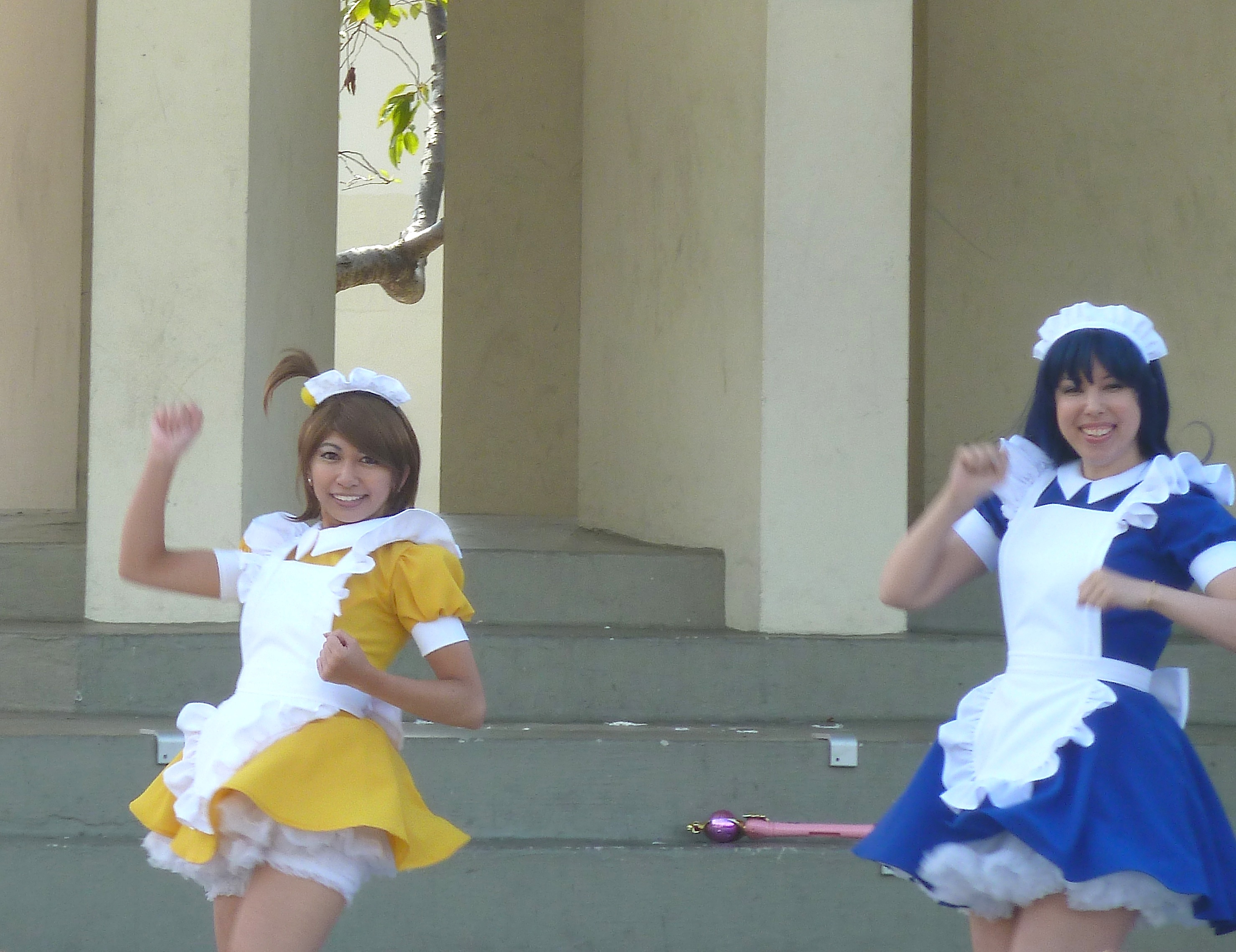 Cosplay is a type of performance art in which participants dress up as favorite characters from manga, anime, or other fantasy figures. The more dramatic and realistic, the better. I didn’t see any examples yesterday, but per Wikipedia, “inanimate objects are given anthropomorphic forms and it is not unusual to see genders switched, with women playing male roles and vice versa. There is also a subset of cosplay culture centered around sex appeal, with cosplayers specifically choosing characters that are known for their attractiveness and/or revealing (even explicit) costumes.”
