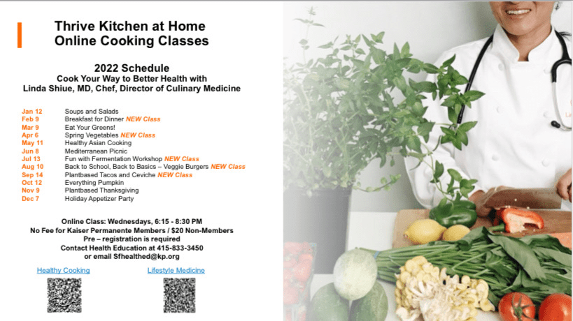 And as always, Thrive Kitchen at Home has monthly virtual classes, free for Kaiser Permanente members, $20 for the public.