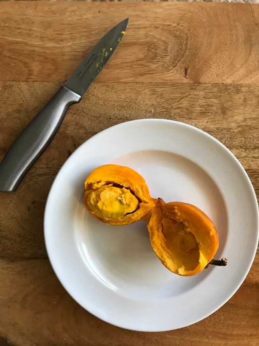 It’s so named because the ripe fruit, which I’ve just tried for the first time, has a color and texture (but thankfully not flavor) very similar to hard boiled egg yolk. The farmer I bought it from told me it was like a cooked sweet potato, which is true also.