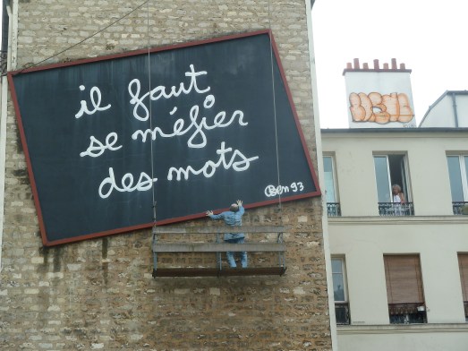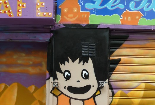 Besides Wenzhounese/Chinese shops and restaurants, Belleville has influences from multiple other cultures.  We saw Egyptian, Turkish and Moroccan shops interspersed among the Chinese businesses.  This eclectic neighborhood is also a magnet for artists.  The otherwise drab walls have been brightened with a colorful variety of street art, both on side streets and centered along Rue Dénoyez.