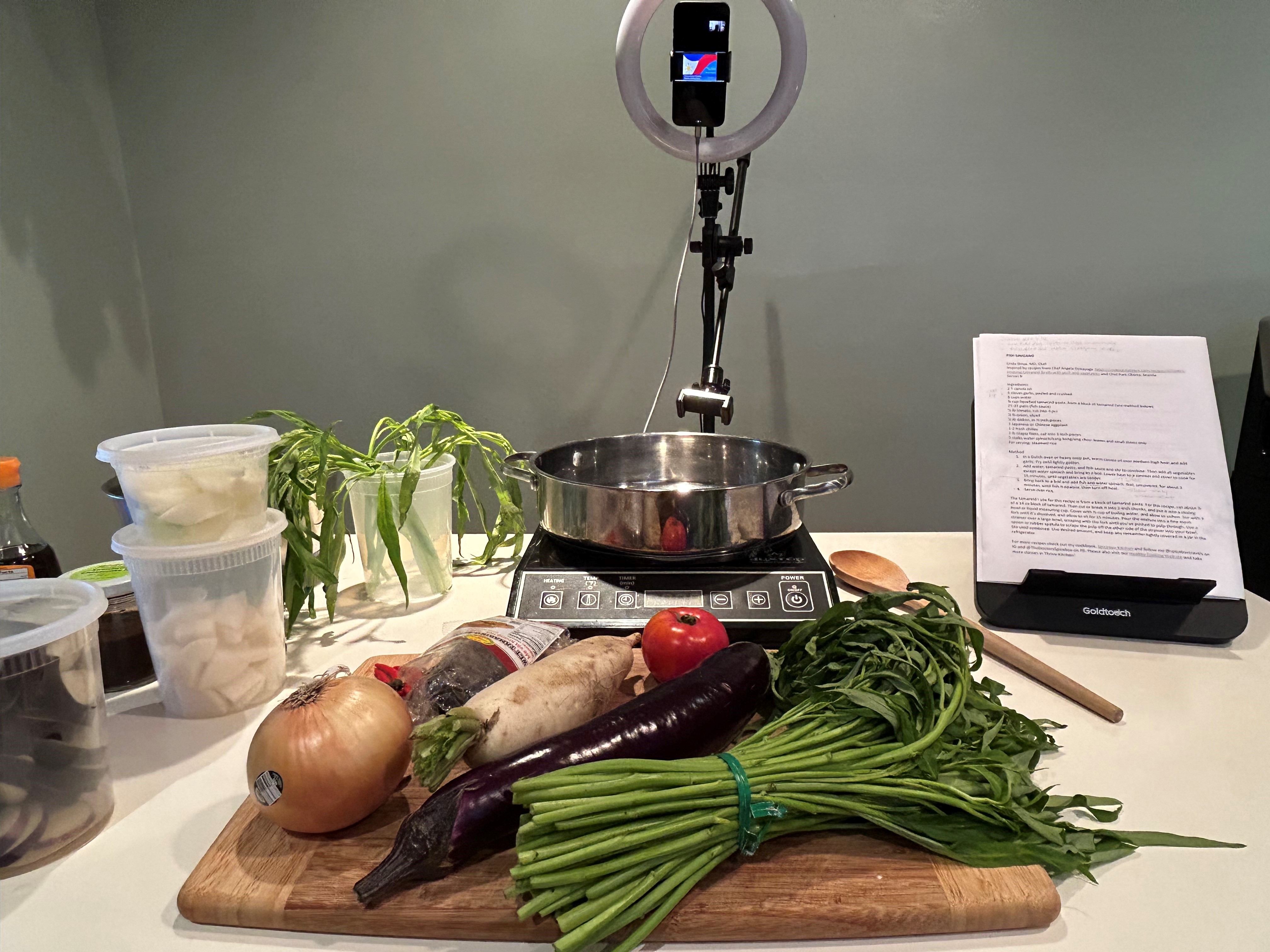 As we close out the month of October (a great month- my birthday month!) I would like to share a recipe from my most recent Thrive Kitchen at Home cooking class for Kaiser Permanente– a special class to celebrate Filipino American History Month. I had so much fun presenting with two of my Filipina physician colleagues, and honored to be allowed to contribute my healthier take on the beloved sour soup, sinigang, as a non-Filipina. This recipe was adapted from two sinigang recipes, mainly from the one I was taught way back in 2014 by Chef Pam Obieta in Manila, with a nice cheffy twist from Chef Angela Dimayuga in the New York Times (adding a lot of sauteed garlic to build the flavor base). This dish celebrates the bounty of very nutritious vegetables in the Filipino diet– kang kung (water spinach or ong choy), tomatoes, eggplant, daikon radish, garlic and tamarind. Making a sustainable fish based version (which could be made fully plantbased with the substitution of tofu) and using tamarind pulp as opposed the very popular but very high sodium sinigang packets from Mama Sita and Knorr brings all the flavor without the sodium, preservatives and emulsifiers that are not good for anyone’s health.