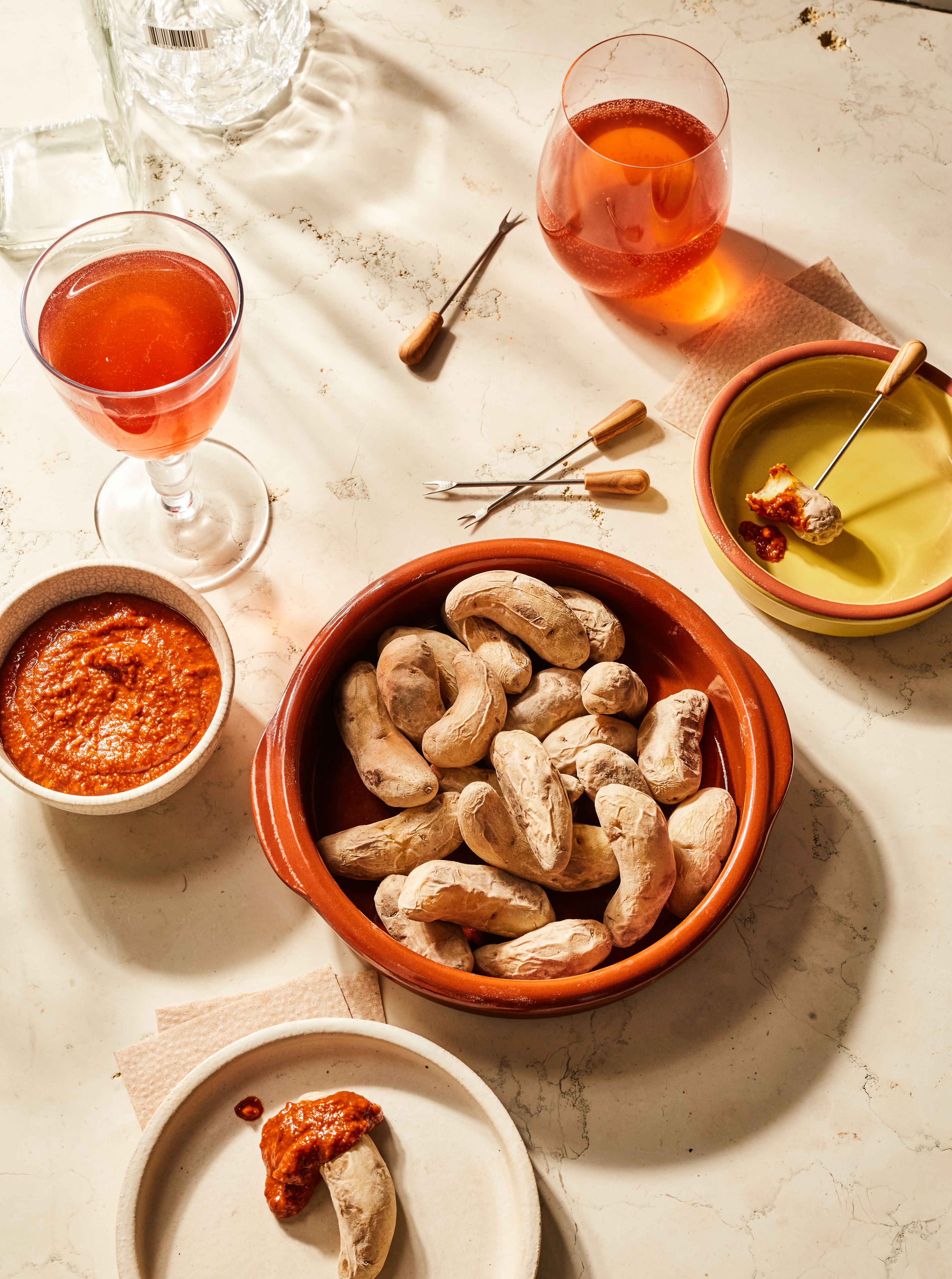 Have you ever boiled potatoes in sea water? They’re not salty, as you might expect, but instead perfectly briny. Even if you’re landlocked, you can recreate this pleasure in your kitchen. One of the simplest and fan favorite recipes from Spicebox Kitchen is the Canary Island Potatoes with Romesco.