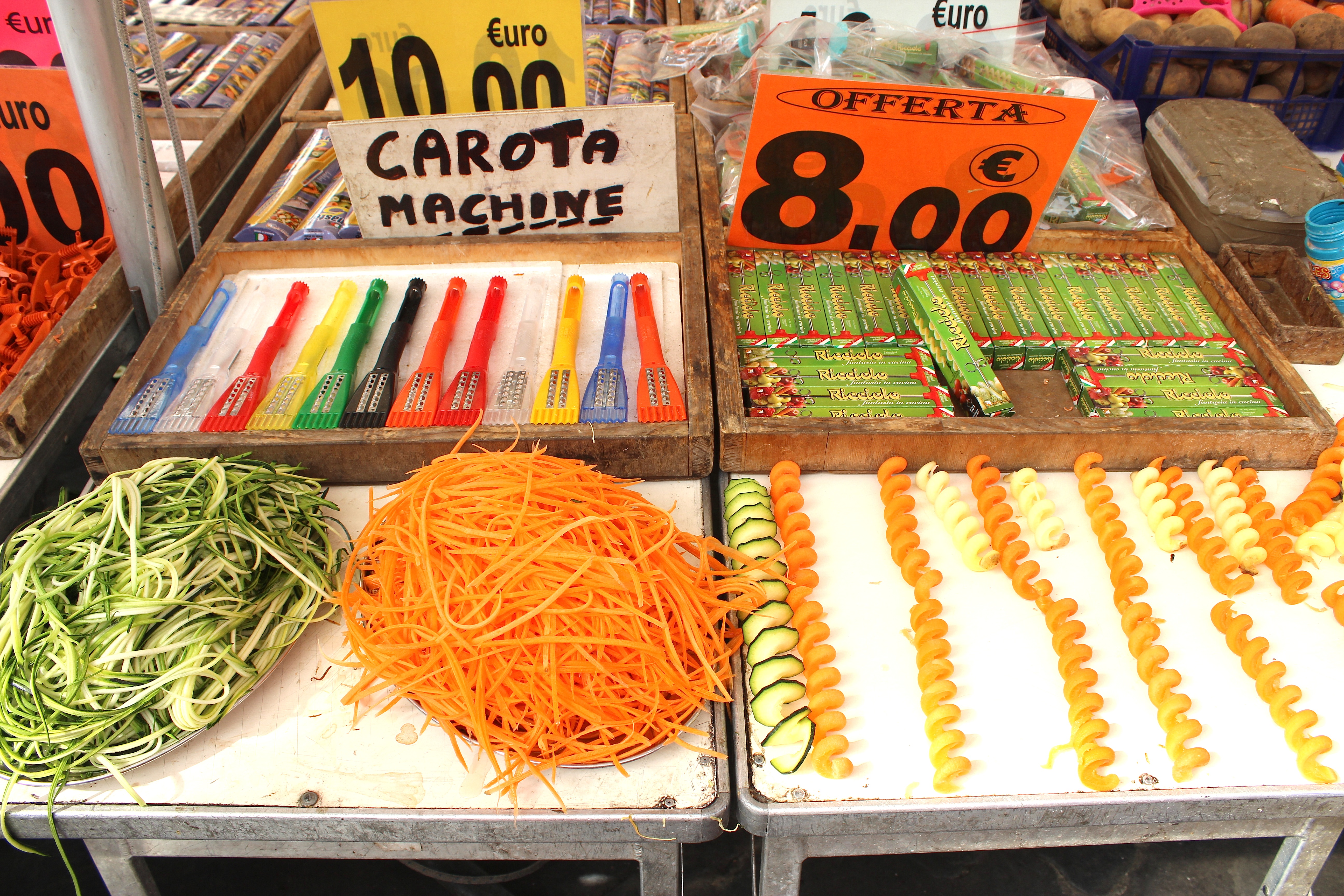 If you’re now wondering about my judgement, just watch Ahmed in action in the instructional clip below.  You’ll get the best of his jokes (or not), and maybe understand how I bought not just one, but two sets of his “carota machines.”